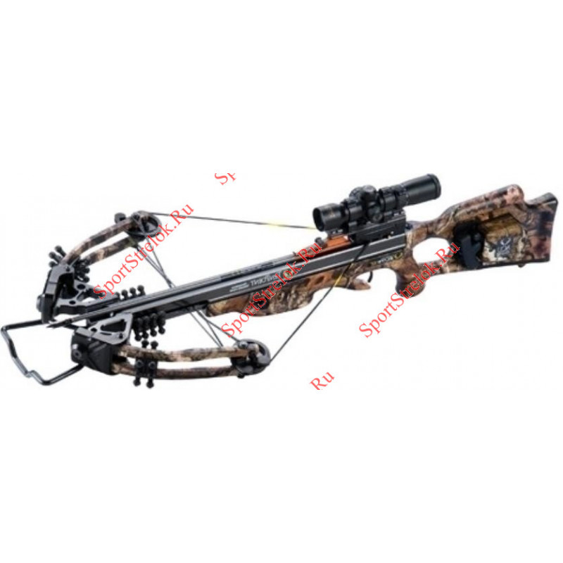 В комплекте: оптический прицел RangeMaster Pro, механический натяжитель ACUDraw или Ручной натяжитель ACUDraw 50, быстросьемный кивер на три стрелы, 6 стрел TenPoint Pro.