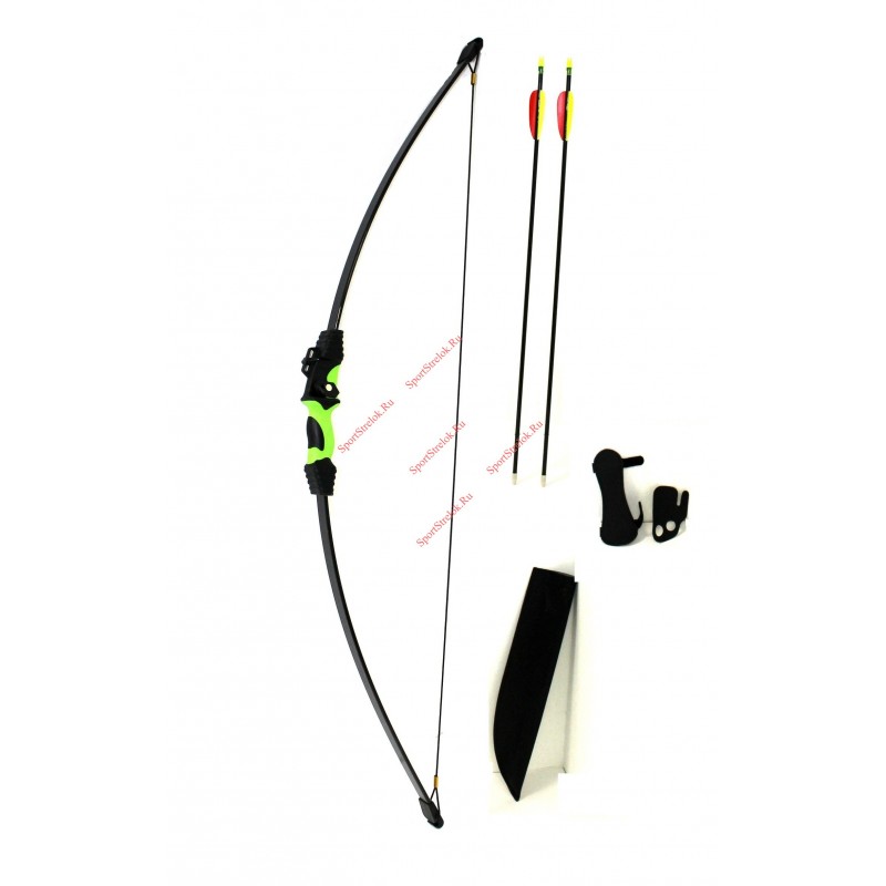 В комплекте: Лук, прицел, полочка для стрелы, защита для руки, напальчник, две стрелы, колчан для стрел.