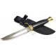 В комплекте с ножом идут прочные ножны из натуральной телячьей кожи с лямкой под ремень, так же дополнительное отверстие которое даёт возможность крепить ножны к бедру.